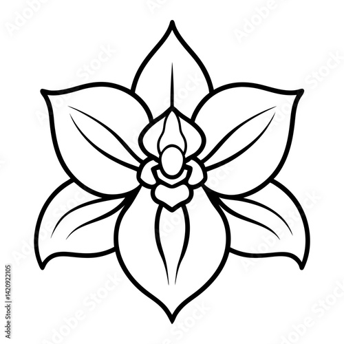 Fototapeta premium Line art bof an orchid flower with buds and curved stem vector illustration