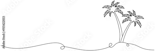 © Al, Obraz premium Line art coconut tree illustration backgraund