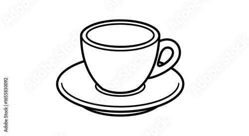 Obraz premium Line Art Coffee Cup on Saucer in Minimalist Style