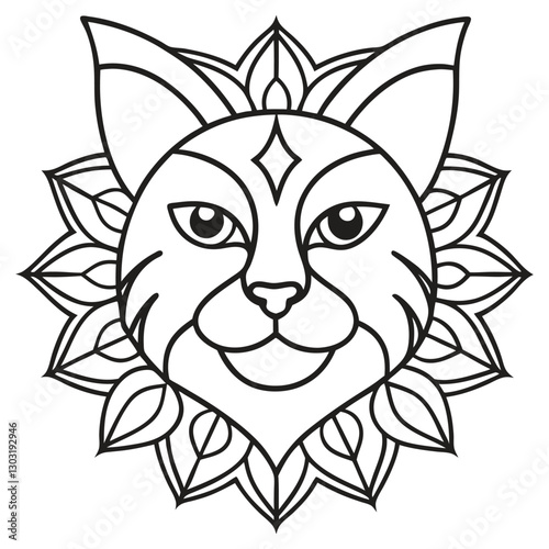 © TRTASFIQ, Obraz premium Line art design of a cat head with mandala vector illustration