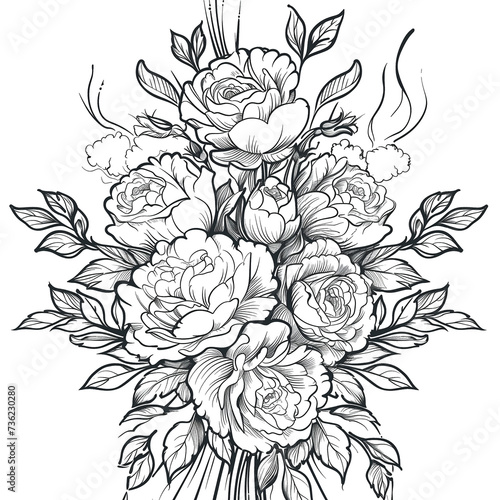 © Bonya Sharp Claw, Fototapeta premium line art floral black and white background . design for coloring book