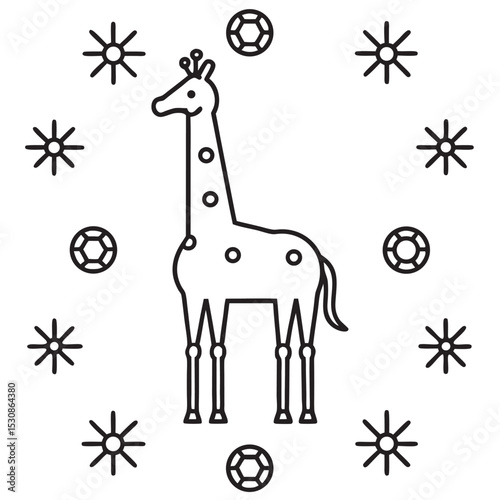 Naklejka premium Line Art Giraffe with Snowflakes and Diamonds Illustration