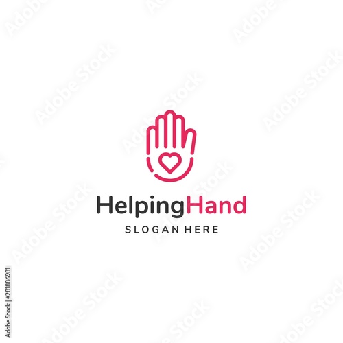 Fototapeta premium line art hand with heart logo