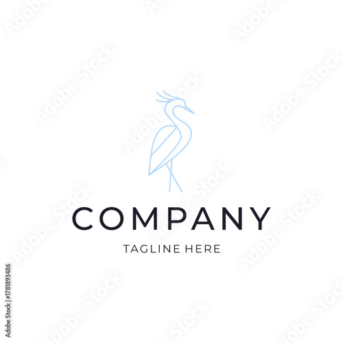 © side, Obraz premium Line art heron logo design. geometric animal flat icon illustration vector