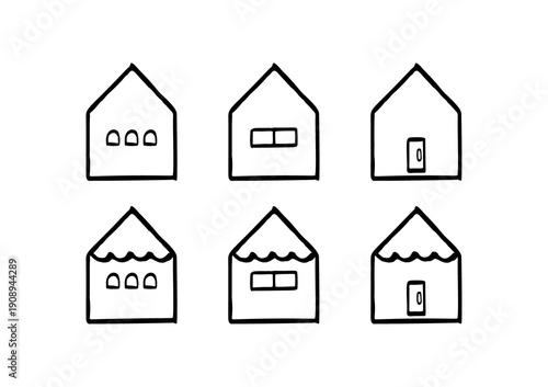 © maya, Fototapeta premium Line art house icon set 線画おうちイラストセット丸屋根