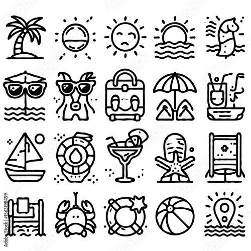 Naklejka premium line art icons themed around beach and summer vacation