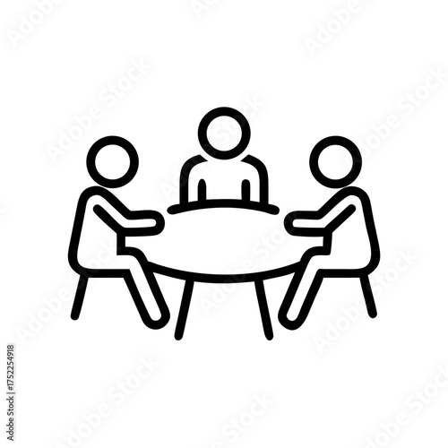 © Tasfia, Fototapeta premium Line art illustration of a business meeting with three people around a table