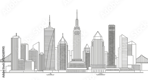 Naklejka premium Line art illustration of a city skyline.