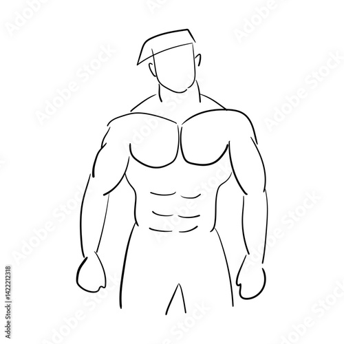 © Aamir Gfx, Fototapeta premium Line art illustration of a muscular man with defined abs and chest.