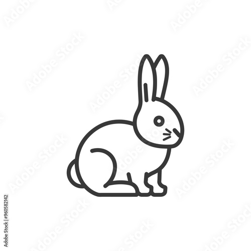 © NikahGeh, Obraz premium Line art illustration of a rabbit sitting with its ears up