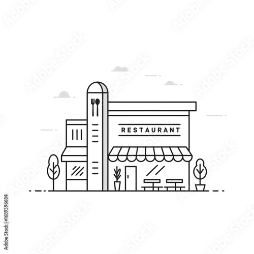 © erga, Naklejka premium Line Art Illustration of a Restaurant Building