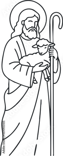Fototapeta premium Line art illustration of a shepherd holding a lamb, symbolizing care and...
