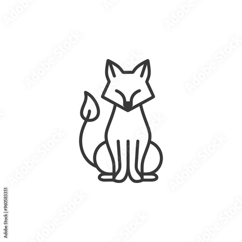 © NikahGeh, Fototapeta premium Line Art Illustration of a Sitting Fox with a Leaf Tail