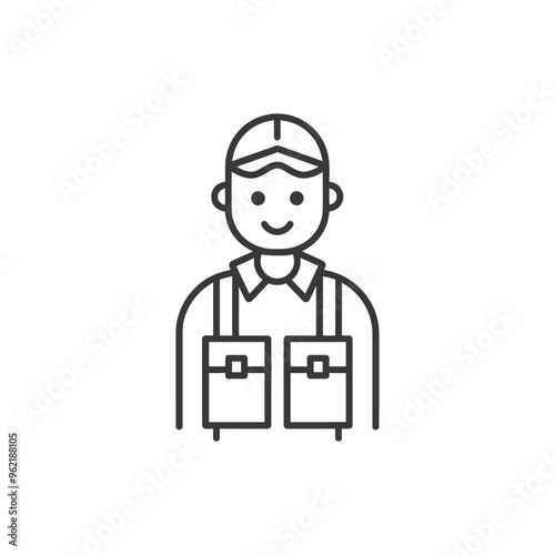 © NikahGeh, Obraz premium Line art illustration of a smiling man wearing a cap and vest