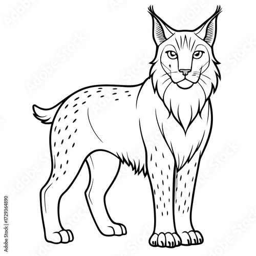 © Ohid Rahman, Obraz premium Line art illustration of a standing lynx with spots