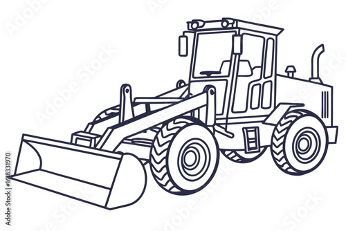 © Md, Naklejka premium Line Art Illustration of a Wheel Loader Construction Vehicle.
