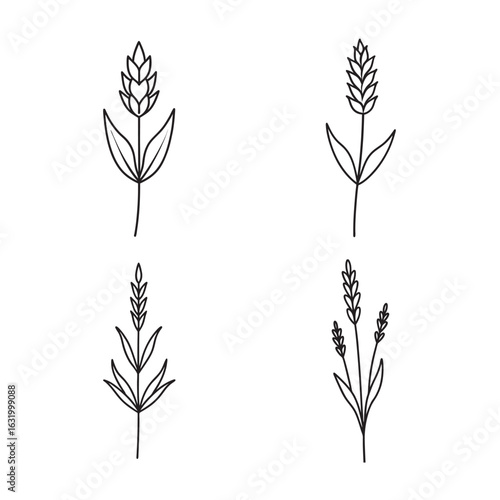 © shankari, Fototapeta premium line art lavender with curved leaf set bundle on the white background