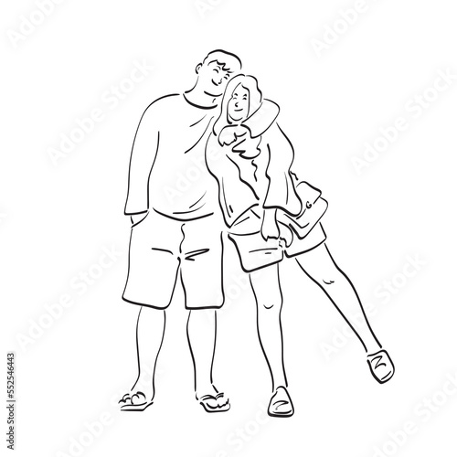 Fototapeta premium line art lovers in love illustration vector hand drawn isolated on white...