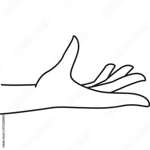 Fototapeta premium Line art of a Caucasian hand with fingers extended showing a receiving...