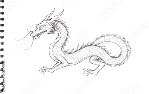 Obraz premium Line Art of a Flying Dragon with Detailed Wings and Fierce Expression...
