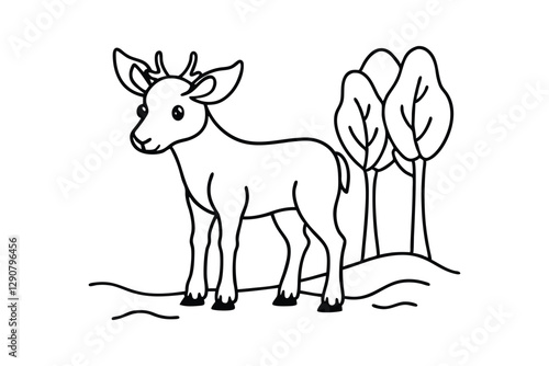 Obraz premium Line art of a tiny baby moose vector art illustration for coloring page.eps