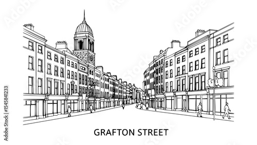 © Organicpatterns, Naklejka premium Line Art of Grafton Street, Dublin