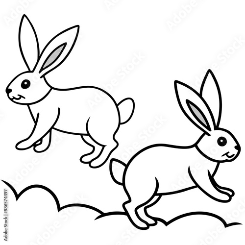 Obraz premium Line Art of Hopping Rabbits with Perked Ears in a Field Vector