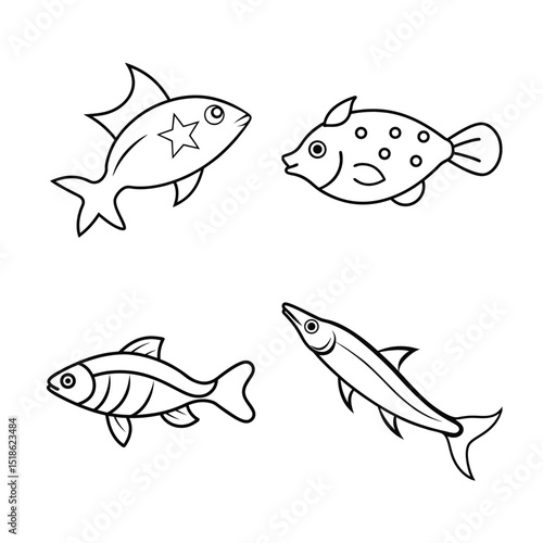© Ashini Kumer Roy, Fototapeta premium line art of sea fish bundle design (1)