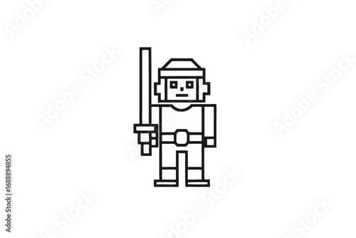 Fototapeta premium Line Art Pixelated Warrior with Sword, Retro Style vector, on White Background