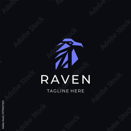 © side, Fototapeta premium Line art raven logo design. geometric gothic flat icon illustration vector