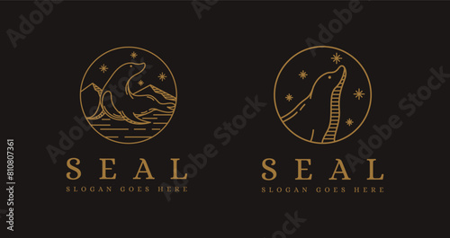Fototapeta premium line art sea seal, fur seal logo icon vector illustration on dark background