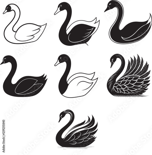 Fototapeta premium Line art silhouette bird set icon design