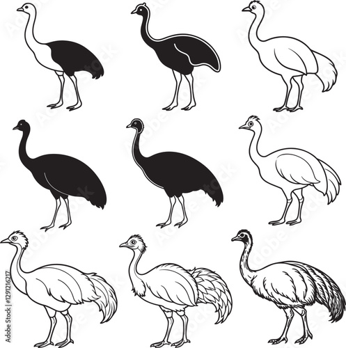 © Selim, Fototapeta premium Line art silhouette bird set icon design