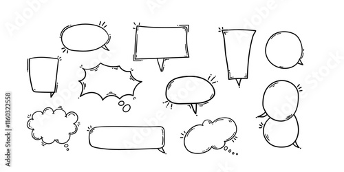 Fototapeta premium Line Art Speech Bubble Set, Funky Dialog Box Pack, Hand Drawn comic Speech bubble set,