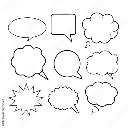 Fototapeta premium Line art speech bubbles bundle in vector format, perfect for clean, modern...