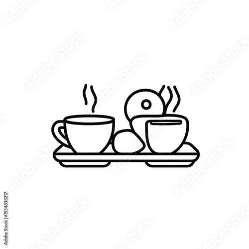 © Md Mojammel, Obraz premium Line Art Steaming Coffee Cups, Donut, and Pastry on a Serving Tray