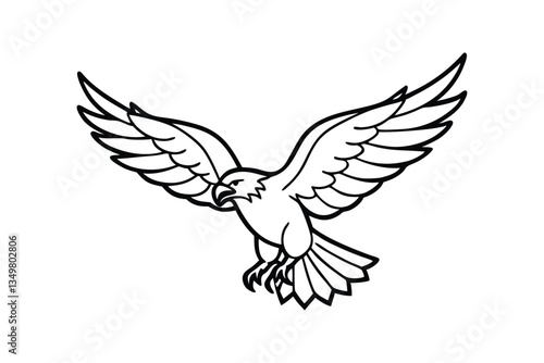 Fototapeta premium Line art vector illustration of an eagle in mid-flight with its wings spread wide.eps
