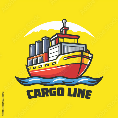 © EPS, Obraz premium Line Art Vector Logo of a Cargo Ship with Cartoon Character