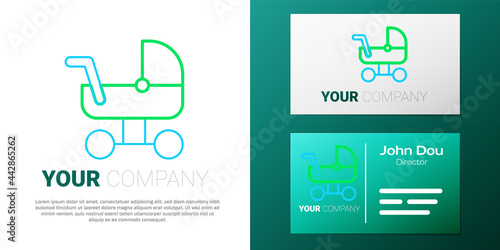 Fototapeta premium Line Baby stroller icon isolated on white background. Baby carriage, buggy, pram, stroller, wheel. Colorful outline concept. Vector