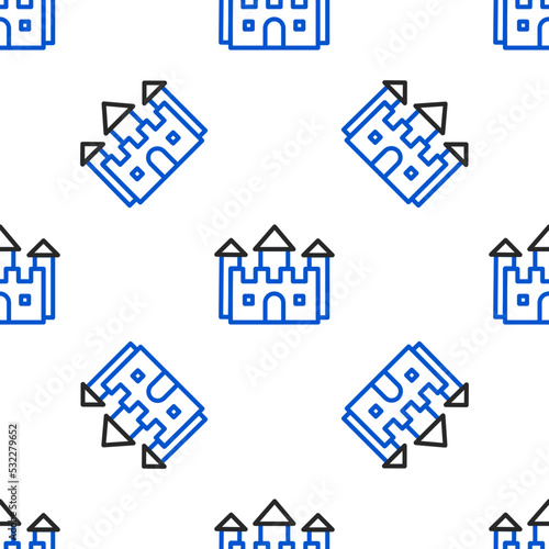 © Oksana, Fototapeta premium Line Castle icon isolated seamless pattern on white background. Colorful outline concept. Vector
