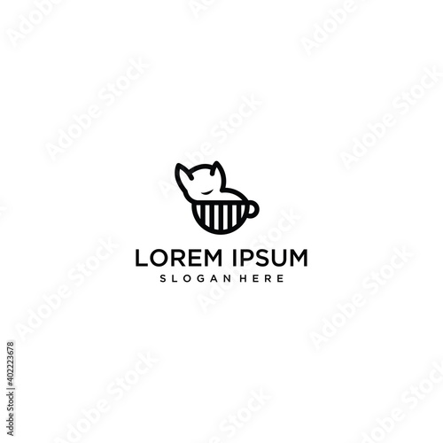 Fototapeta premium line cat logo combined with cup.