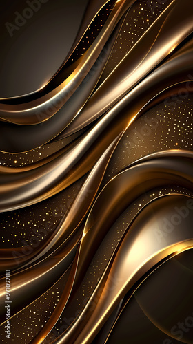 © Akharadat, Obraz premium Line curve golden luxury on brown background. Realistic template cover 3d style design. Vector illustration.