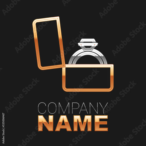 © Iryna, Naklejka premium Line Diamond engagement ring in a box icon isolated on black background. Colorful outline concept. Vector