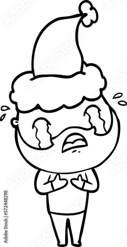 Obraz premium line drawing of a bearded man crying wearing santa hat
