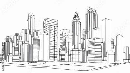 © bcendet, Fototapeta premium Line drawing of a city skyline with tall buildings.