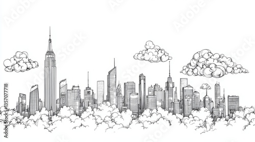 Obraz premium Line drawing of a futuristic city skyline for colouring