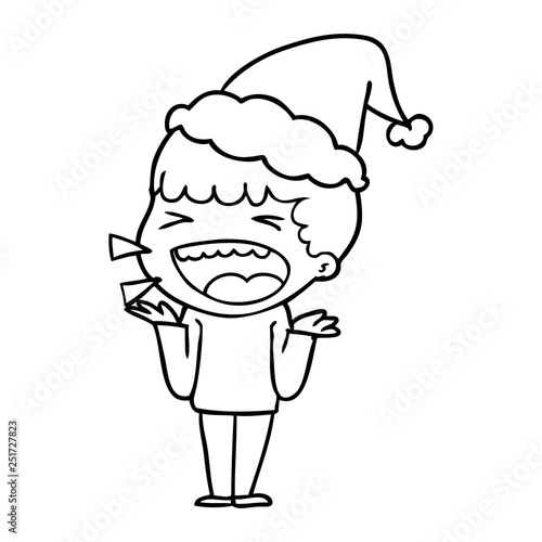 Obraz premium line drawing of a laughing man wearing santa hat