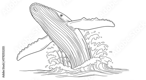 Fototapeta premium Line drawing of a majestic whale breaching from ocean waves