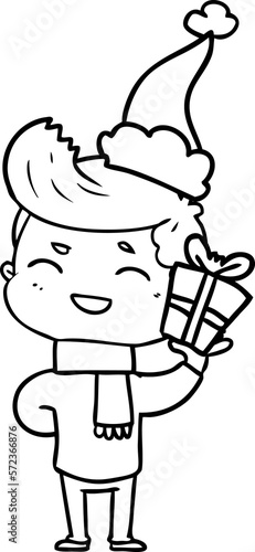 © lineartestpilot, Obraz premium line drawing of a man laughing wearing santa hat