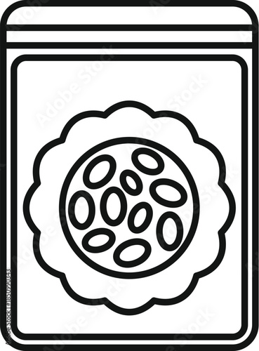 Obraz premium Line drawing of a packet of seeds for planting showing round label with seeds inside